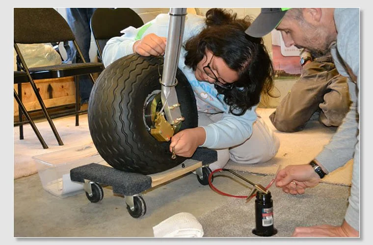 Our BushCat Build class has been working after school on Wednesdays for almost two months, having picked up right where they left off in the spring: installing ailerons, wing tips and brake lines on our airplane.